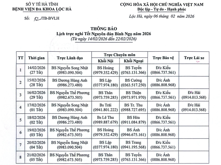 Thông báo lịch nghỉ Tết Nguyên đán Bính Ngọ năm 2026